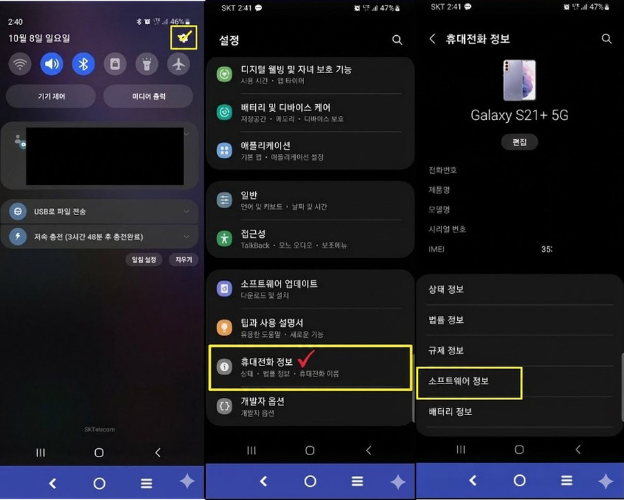 화면을 맨 아래로 내려 [휴대전화 정보]를 터치합니다