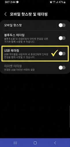 STEP 4. USB 테더링 연결하기
