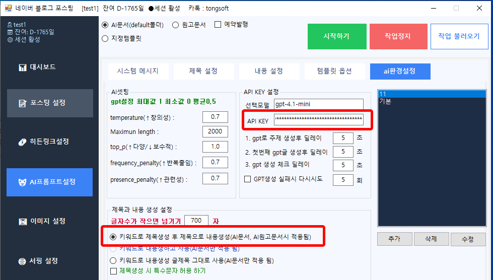 블로그 AI 자동 포스팅 사용법 ① AI 문서 (자동생성형) 설정 가이드