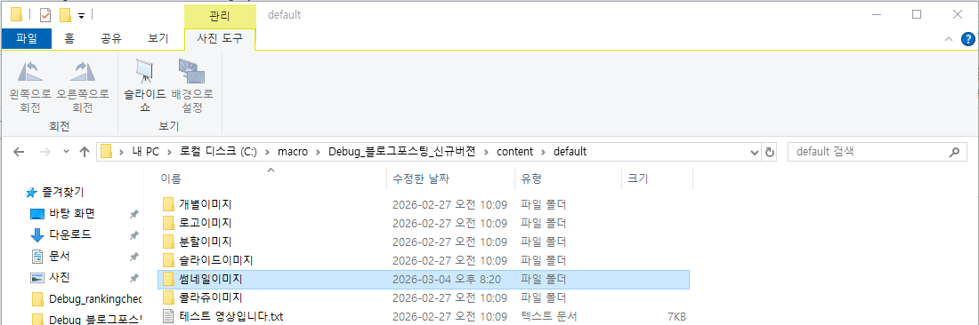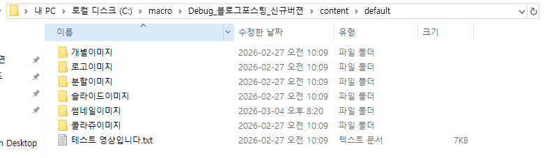 ※ default 폴더 경로: C:\macro\Debug_블로그포스팅_신규버젼\content\default