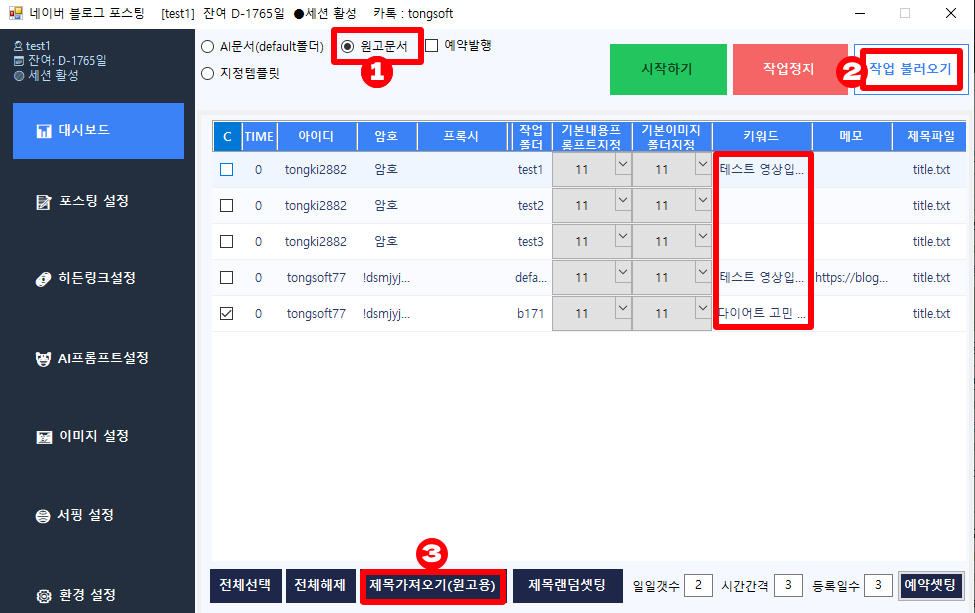 먼저 프로그램 구동에 필요한 기본 정보와 포스팅할 원고를 준비해 주세요.